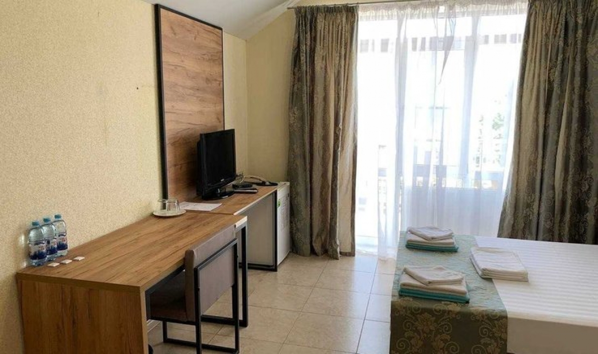 В номере двуспальная кровать, прикроватные тумбочки, диван, кресло-кровать, стол, стулья, шкаф, телевизор, холодильник, кондиционер (сплит-система), WI-FI, санузел (ванна, умывальник, туалет, фен, халат, тапочки). Балкон, вид на территорию. Дополнительное место - кресло-кровать. Максимальное размещение - 5 человек.
