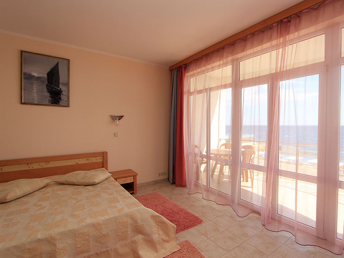 Номер находятся в корпусе №5, который отделен от берега моря всего 10 метрами! Именно здесь можно наслаждаться свежим бризом и просыпаться под нежный шепот волн. Площадь – 56 кв.м. Внутри – двуспальная или 2 раздельные полуторные кровати, раскладывающийся диван.