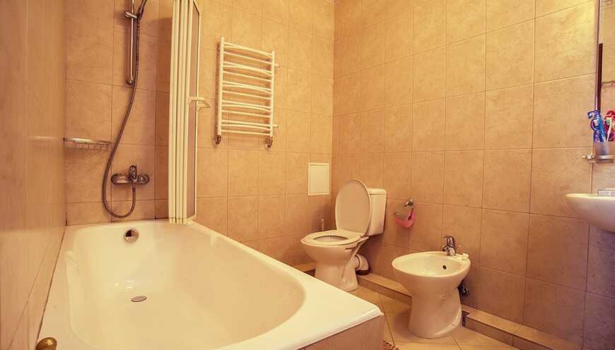 Два санузла — ванна, душевая кабина, биде, умывальник, WC, мини-парфюмерия. Дополнительные места - раскладной диван. Максимальное размещение - 4 человека.