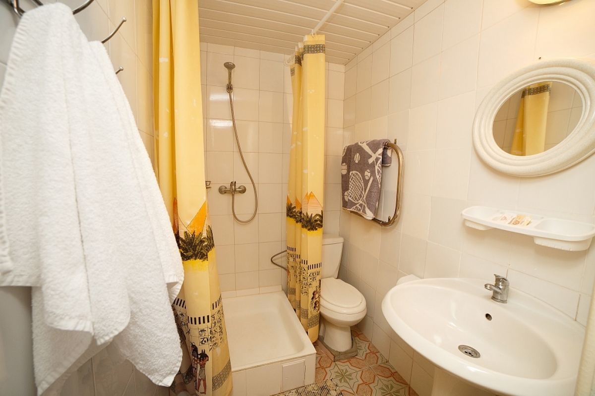 В номере две раздельные кровати, две прикроватные тумбочки, шкаф, телевизор, холодильник, кондиционер, зеркало, вешалка, санузел (ванна, умывальник, туалет, комплект полотенец). Номер с балконом видом на море. На балконе набор летней мебели. Дополнительное место – евро-раскладушка. Максимальное размещение – 3 человека.