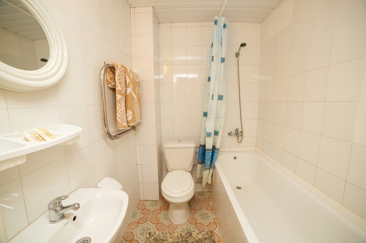 В номере две раздельные кровати, прикроватные тумбочки, светильники, вешалка, зеркало, шкаф, стол, кондиционер, телевизор, холодильник, набор посуды, санузел (ванна, умывальник, туалет, комплект полотенец). Номер без балкона. Дополнительное место – евро-раскладушка. Максимальное размещение – 3 человека.