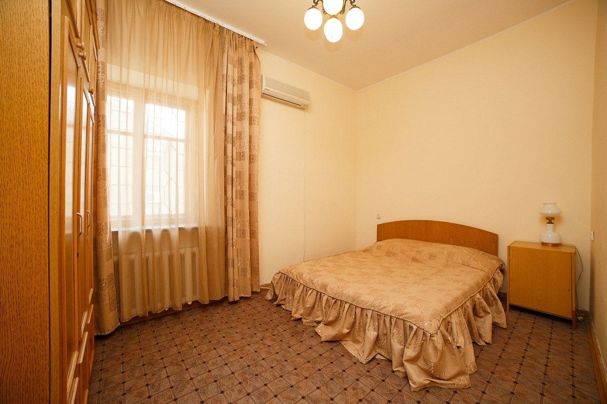 Номер состоит из трех комнат. В спальнях двуспальная кровать, прикроватные тумбочки, светильники. В гостиной раскладной диван. В номере мебельная стенка, стол, стулья, кресла, журнальный столик, вешалка, комод, зеркало, телевизор, холодильник, электрочайник, чайный набор посуды, кондиционер, санузел (ванна, умывальник, туалет, биде, комплект полотенец). Номер с балконом видом в парк. На балконе набор летней мебели. Дополнительное место – раскладной диван. Максимальное размещение – 6 человек.